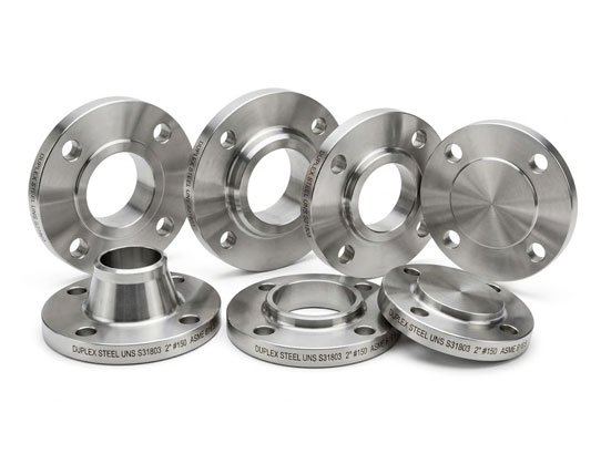 These flanges are made from duplex stainless steel, which combines austenitic and ferritic microstructures, offering a balance of strength and corrosion resistance.